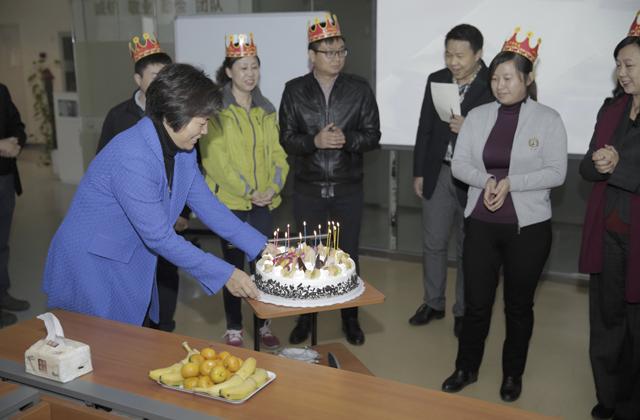 2015年11月9日上午,世紀長河集團公司總部舉辦月度集體生日會,郭美玲董事長參加。