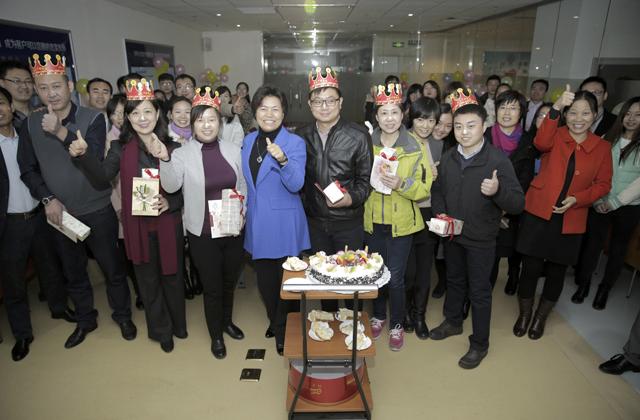 本次生日會集中為十月、十一月份生日的北京總部員工舉辦。上午十點十五分,公司總部員工齊聚多功能會議廳,郭美玲董事長專程趕回公司為本次生日會的員工慶生。