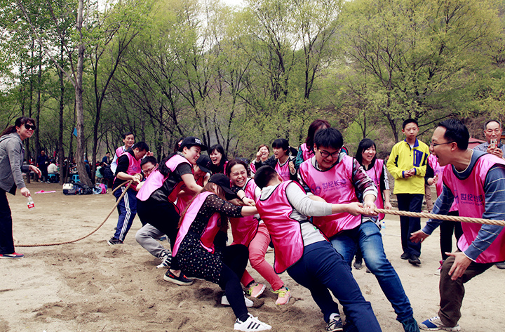 清晨,全體員工在集團總部集合,乘坐大巴共同前往春游拓展目的地——懷柔水長城景區。順利抵達后,在集團辦公室及人力資源部的組織安排下,首先是破冰啟航和團隊建設,通過分組、起隊名、選隊長、定隊歌隊呼,讓各部門員工迅速融合。為了體現公司文化,各隊分別以“世、紀、長、河”這幾個詞來命名,各隊分別作了風采展示,緊張激烈的“摸著石頭過河”游戲后便進入到了第二個環節。